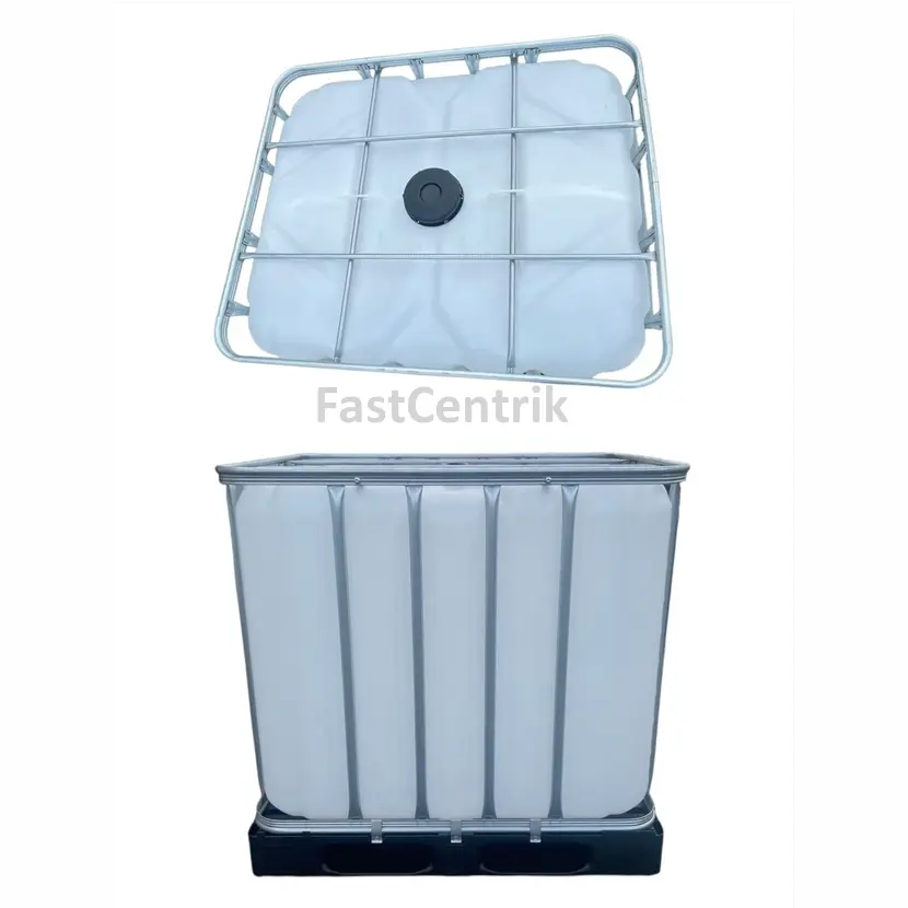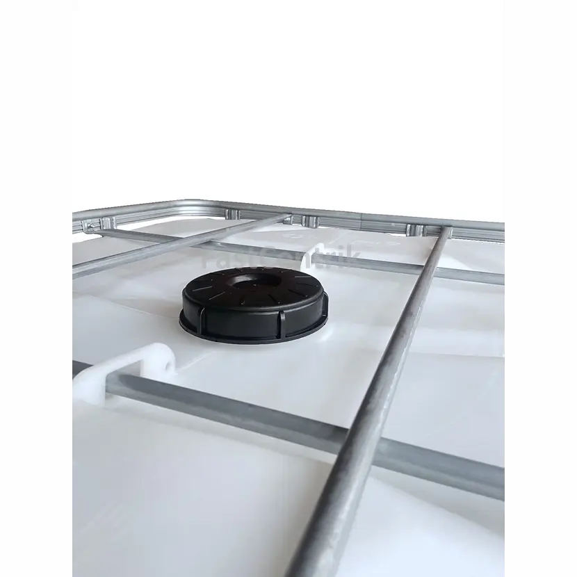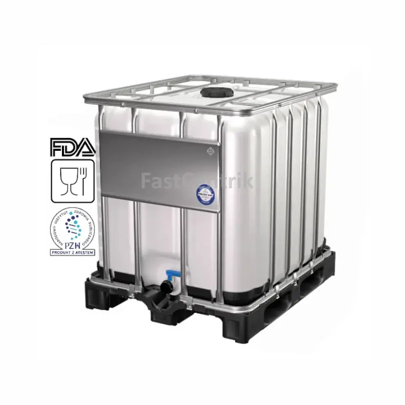 IBC kontajner o objeme 1000 litrov, horný plniaci otvor DN 150 má priemer 15cm a spodný výpustný ventil DN 50 má priemer 5cm. Paleta je plastová. Rozmery šírka x dĺžka x výška 100cm x 120cm x 116cm, váha 57kg, farba naturálna. Vnútorná nádoba ( vložka/bublina ) je vyrobená z polyetylénu s vysokou hustotou ( HDPE ). IBC kontajner má potravinový certifikát umožňujúci styk s potravinami.
